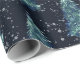 Hand som målas i vattenfärger, grisen träd mönster i mörk blått bakgrund, som ger festiv sprit, bäst för julhelgens presentförpackning