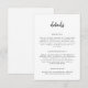 Elegant och minimalistiskt bröllopsinbjudan bifogad kort i en modern enkel designstil med en stilren och chic kalligrafi skript typografi i ett informellt handskrivet teckensnitt i klassiskt svart och vitt.