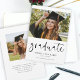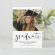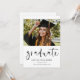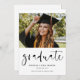 En modern inbjudan från studenten som innehåller ord "student" på framsidan i snyggtens manusgrafi med ditt favoritfoto, plus ett annat överordnat foto på baksidan bredvid din egen anpassningsbar som hedrar graderingen. Detta är den enkla minimalistiska svartvita versionen.