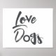 Modern, lekfull och djärv grafisk design av ett ordspråk som heter "Kärlek Hundar" i grått färg. Kreativ-, experiment-, coola- och trendig-typografi.