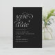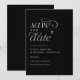 Spara datum-kort (Svart med vit text): Detta moderna och eleganta bröllop spara datum-kort har en snygg svart bakgrund med enkel vit text och ett charmigt handritat hjärta. Dess minimalistiska design utstrålar sofistikation, vilket gör det till det perfekta sättet att tillkännage din speciella dag med stil och grace. Perfekt för par som söker en raffinerad och tidlös touch för deras bröllopsbrevpapper.