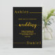 Den här eleganten svart och guld bröllopsinbjudan är perfekt för ett modernt bröllop. Den enkla utformningen har elegant guld kalligrafi på svart bakgrund.