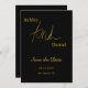 Den här eleganten svart och guld bröllop spara datum är perfekt för ett modernt bröllop. Den enkla designen har kalligrafi av elegant guld på svart bakgrund.