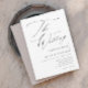 En Elegant enkel svartvit bröllopsinbjudan med modernt skript och klassisk text. Baksidan har en foto- och QR-kod-OSA. Klicka på knappen Redigera om du vill anpassa designen.