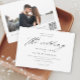En modern, enkel svartvit inbjudan till fotobröllop med elegant och klassisk text. På baksidan finns ett foto- och QR-kod på webbplatsen osa och bröllop. Klicka på knappen Redigera om du vill anpassa designen.