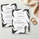 Den här elegantens svartvita bröllopsinbjudan är perfekt för ett modernt bröllop. Den enkla designen har svartfärgad kalligrafi för elegant, en chic svart ram och en illustration av brud och groom på en vit bakgrund. Inbjudningskortet innehåller information om bröllop på baksidan i stället för att betala ett separat visitkort.