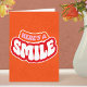 Ett Modernt Enkelt Tack-kort med texten 'Här är ett Leende'. Det finns i två färgvariationer men kan anpassas till valfri färg. Detta ljusa och färgglada kort kan användas som ett tackkort eller som ett kort för alla tillfällen. Det inre meddelandet är redigerbart och kan anpassas av dig.