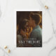 Ett modernt bröllopsfoto Spara datum-kort med ett vertikalt foto som sträcker sig över hela ytan och med ren och chic redigerbar text på framsidan. Baksidan har avtagbar text för bröllopswebbplatsen så att gästerna kan få mer information. Klicka på redigeringsknappen för att anpassa denna design.