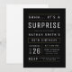 Modern och minimalistisk rolig vuxen överraskningsfödelsedagsinbjudan i svart, guld och vitt, perfekt för 21-års, 30-års, 40-års, 50-års, 60-års, 70-års, 80-års, 90-års eller någon annan enkel födelsedagsfest, överraskningsfest eller något annat tillfälle! Anpassa den med din egen text och festinformation.