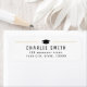 Modern typografi med studentmössa i guld svartvitt, underbar personligens returadressetikett för studentfest.