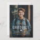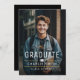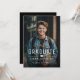 Modern och minimal typografi av tillkännagivande för studenten med foto, roligt studentfest på baksidan i svartvitt, guld och vitt, Anpassningsbar den med egna foto- och party-uppgifter.