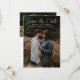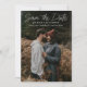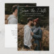 Denna moderna enkla eleganta stilrena fotobesparing av datum tillkännagivande har handskriven vit text, minimala anpassningsbara textdetaljer och foto på framsidan. Baksidan har plats för ett extra foto och personligt meddelande. Du kan uppdatera exempeltexten med dina uppgifter eller ta bort alla oönskade element. Klicka på redigeringsknappen för att anpassa denna design till dina behov.