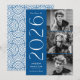 Fira din examen med detta moderna examensmeddelande i klass 2026, designat med en ren art déco-stil. Framsidan av meddelandet visar tre bilder av examen arrangerade vertikalt längs höger sida, tillsammans med ”2026” i tydlig vit art déco-stil mot en klassisk blå bakgrund. Anpassa meddelandet med examenens namn och skola för att skapa en meningsfull och stilren souvenir. Baksidan av meddelandet visar ett koordinerande blått och vitt geometriskt virvelmönster som fullbordar den moderna designen. Perfekt för både gymnasie- och högskoleexamen, detta examensmeddelande med flera bilder erbjuder ett elegant sätt att dela med sig av milstolpen i klass 2026.