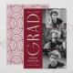 Snyggt studenten-meddelande med tre foton från student som finns till högerna av designen i en lodrät layout. "Grad" visas i vitt, modernt konstnärligt dekotecken med burgundbakgrund. Anpassa det moderna fotot från studenten genom att lägga till student namn, studenten och namn. Utformningen återgår till visning av en grumlig och vit geometrisk vridningsbakgrund. Perfekt för både högskoleexamen och högskoleexamen!