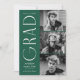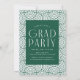 inbjudningskort för studentfest av trendig med student av tre foton som finns till högerna av designen i en lodrät-layout. "Grad" visas i vitt, modernt konsdeco-tecken med gröntens bakgrund. Anpassa den moderna fotot studentfest inbjudan genom att lägga till student namn, studenten och namn. Designen återgår till visning av studentfesten med en grönt och vit geometrisk vridningsbakgrund. Perfekt för både högskoleexamen och högskoleexamen!