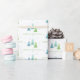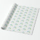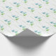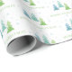 Den här julklappen som omsluter pappra innehåller en reflexbild på tre träd som visas i färgade och kalkgröna nyanser och accentueras med ljusblått snöflingor. Texten "GOD JUL" står i grönt kalk.