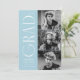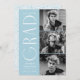 inbjudningskort för studentfest av trendig med student av tre foton som finns till högerna av designen i en lodrät-layout. "Grad" visas med vit, modern konsthändelse med blå himlar-bakgrund. Anpassa den moderna fotot studentfest inbjudan genom att lägga till student namn, studenten och namn. Studentfesten återgår till visning med ljusblå och vit geometrisk vridningsbakgrund. Perfekt för både högskoleexamen och högskoleexamen!