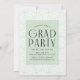 inbjudningskort för studentfest av trendig med student av tre foton som finns till högerna av designen i en lodrät-layout. "Grad" visas i vitt, modernt konsdeco-tecken med myntbakgrund i grönten. Anpassa den moderna fotot studentfest inbjudan genom att lägga till student namn, studenten och namn. Designen återgår till visning av studentfestens detaljer med en mynt grönt och vit geometrisk vridningsbakgrund. Perfekt för både högskoleexamen och högskoleexamen!