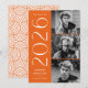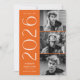 Fira din examen med det här moderna examensmeddelandet för klassen 2026 i fotoformat, designat i en livfull art déco-stil. Framsidan av meddelandet visar tre av examenets foton arrangerade vertikalt längs höger sida, tillsammans med ”2026” i tydlig vit art déco-stil mot en ljus orange bakgrund. Anpassa meddelandet med examenets namn och skola för att skapa en meningsfull och stilren souvenir. Baksidan av meddelandet visar ett koordinerande orange och vitt geometriskt virvelmönster som fullbordar den moderna designen. Perfekt för såväl gymnasie- som högskoleexamen, det här examensmeddelandet med flera foton erbjuder ett energiskt sätt att dela milstolpen för klassen 2026.