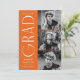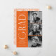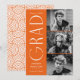 Snyggt studenten-meddelande med tre foton från student som finns till högerna av designen i en lodrät layout. "Grad" visas i vitt, modernt dekotecken med orangens bakgrund. Anpassa det moderna fotot från studenten genom att lägga till student namn, studenten och namn. Designen återgår till visning, orange och vit geometrisk vridningsbakgrund. Perfekt för både högskoleexamen och högskoleexamen!