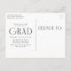 Inbjudan-vykort i enkel studentfest med lodrät student med "Student" som visas med vita, moderna dekotecken. Anpassa fotot studentfest inbjudan genom att lägga till student namn, skola och gradår. vykortet återgår till visning av returadress- och studentfest-information. Postkortet inbjudan är perfekt för både high school och College studenter!