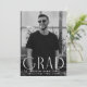Fira student med dessa inbjudningar till snyggtens studentfest som innehåller ett lodrät foto av student och "Grad" i vitt, modernt dekotecken. Anpassa fronten med student namn, skolan och studenten för en anpassningsbar. Baksidan av inbjudan visar dina party-detaljer mot en chic svart och vit geometrisk snurrande bakgrund som skapar en sofistikerad perfekt för alla högskolor eller högskolehögskolor i student. Dessa minimalistiska men ändå elegant inbjudan är perfektens sätt att tillkännage student speciella dag.