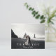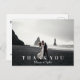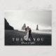 Modern text med mellanrum överträffar ditt val av bild. Anpassa enkelt vykortet med ditt favoritfoto från bröllop! Baksidan lämnas tom för ditt handskrivna tackmeddelande.