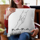 Cute dekorativ kudde för mammor med en teckning av ett barn som håller hand om mor, titeln "MAMMA i ett modernt typsnitt och året då hon blev förälder.