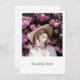 Gör din tacksamhet oförglömlig med vårt moderna tackkort. Framsidan visar ett skattat foto, kompletterat med ett djärvt "Tack", som sätter tonen för ett hjärtligt tack. Vänd på kortet och finner du ett koncist men kraftfullt tackmeddelande på baksidan. Detta kort är en perfekt kombination av personalisering och enkelhet, vilket gör det lätt att uttrycka din tacksamhet med stil. Skicka din tacksamhet på ett meningsfullt sätt med vårt fototackkort – där minnen och uppskattning förenas i en vacker souvenir.