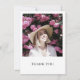 Gör din tacksamhet oförglömlig med vårt moderna tackkort. Framsidan visar ett skattat foto, kompletterat med ett kraftfullt "Tack", som sätter tonen för uppriktig uppskattning. Vänd på kortet, där ett koncist men kraftfullt tackmeddelande väntar. Detta kort är en perfekt kombination av personlig touch och enkelhet, vilket gör det lätt att uttrycka sin tacksamhet med stil. Skicka din tacksamhet på ett meningsfullt sätt med vårt Foto Tackkort – där minnen och uppskattning förenas i en vacker souvenir.