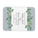 Modern eukalyptus Magnetic Save Datumet Inbjudan dina kära för att spara datumet för din speciella dag med den tidlösa elegansen hos vår magnet Eucalyptus Bröllop spara datum. Delikativt handmålad eukalyptus lämnar i mjuka, lugnande gröntar och fintvättande vita blommor skapar en färsk och romantisk bakgrund, perfekt för varje modernt eller rustiskt bröllop tema. Ange tonen för bröllop med ett spara datum magneter som är lika vackert och minnesvärt som din stora dag. Perfekt för trädgård, utomhus eller botaniskt inspirerat firande! Dessutom kan de skicka den här inbjudan till kylskåpet, eller någon metall yta som påminnelse om att spara datumet.
