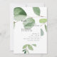 Eucalyptus Inbjudningskort för möhippan. Foliage. Vit bakgrund. Enkelt.