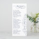 This wedding dinner menu features a clean white background with navy blue text. Simple eucalyptus line art adds a fresh botanical accent. The layout is modern, minimal, and easy to read. This menu pairs perfectly with navy blue and greenery wedding décor, creating a refined and elegant table setting.