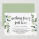 Modern Rustic Greenery Eucalyptus, svart Script-inbjudningskort (med korttitel: Inget fancy, bara kärlek). Det är perfekt för din vigselreception / efterbröllopsfest. Lägg till dina detaljer i matchande svart teckensnitt / bokstäver.