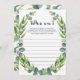 Är du tittar för ett spel för roligtar att spela på din möhippa? Spela Vem är jag med dessa vackra gröna andningsminneskort. Det är perfekten i din trädgård eller botaniska möhippa och det är säkert en slå i party! Låt möhippans gäster skriva ner ett minne de har med bruden. När alla har räknat upp ett minne, läs dem högt och låt bruden gissa vem hon har haft minnet med. Om hon misstar sig, vinner gästen! Spelet blir en underbar isbrytare och konversationsstart för din möhippa.