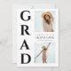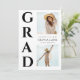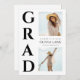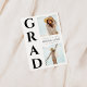 Meddela om din milstolpsprestation med ett stilrent examensmeddelande som kombinerar modern design med personliga detaljer. Till vänster är ordet "Grad" slående staplade i fet svart stil, vilket skapar ett starkt visuellt uttryck. Till höger visar du din resa med två älskade bilder, en längst upp och en längst ner. I mitten presenterar du tydligt alla viktiga examensdetaljer och ser till att familj och vänner har all information de behöver för att fira din prestation. Denna eleganta och genomtänkta design fångar betydelsen av din prestation och delar din glädje med dem som har stöttat dig.