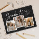 En modern examensfoto collage examensinbjudan med handskriven stil och 3 bilder på framsidan med namn och examensdetaljer. Baksidan har 2 bilder och festdetaljer. Klicka på redigeringsknappen för att anpassa denna design.