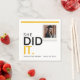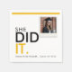 Fira hennes prestation med dessa "She Did It" ("Hon gjorde det")-pappersservetter för examen. Med en modern svart och gul design har servetten plats för ett personligt foto, vilket gör den till ett unikt tillägg till din examensfestdekor. Grattis till examen med stil när de ger sig ut på nästa kapitel. Dessa servetter är perfekta för att servera gäster och hedra denna viktiga milstolpe i hennes akademiska resa. Lägg till en personlig touch till din fest med detta stilrena och meningsfulla festtillbehör.