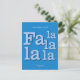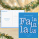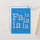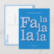 Lätt att anpassa, personifiera bara dessa enkla moderna Fa la la la la julkort utan foto med ditt namn för ett roligt sätt att sprida julglädje. Den minimalistiska typografiska designen har fet bokstavsgestaltning i mjuk pastellblå med en mörk skugga och en ljus himmelblå bakgrund och en textmall längst ned för ditt namn och året. Varje Fa la la la la postkort julkort vänder till en enfärgad vit med en ljusblå lila kant, plats för din returadress och en textmall för din anpassade jultext eller så kan du ta bort det ursprungliga meddelandet. Dessa personliga icke-foto typografi postkort julkort i trendiga julfärger av himmelblå och pastellblå blandar nyckfullhet och tradition med modern minimal grafisk design.