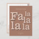 Enkel att anpassa, anpassa den här enkla, moderna Fa la la la la la la no-fotojulkort med ditt namn för en roligt för att sprida glädje över helgdag. Den minimalistiska typografin har fet stil i varma soltans jordtoner med en skugga för mörk och en mocha chokladbrun bakgrund och en textmall vid grund för ditt namn och året. Varje Fa la la la la-vykort återgår till ett helvitt kort med varmt gräns, plats för returadressen och en textmall för anpassningsbarnas jultext, eller så kan du ta bort platshållarmeddelandet. Dessa personliger, som inte är fototypografi, är helgdagskort med vykort i färg i jordklotet av mocha-kaffe och bruna blandning av stollig och har en modern minimal grafisk utformning.