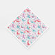 En ljus och modern blommigt av fågelvattenfärg mönster i rött, teal och lila på vit bakgrund. Originalkonst av Nic Squirrell.