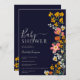 Modern fall - blommor - marin blå babydusch inbjudningar