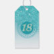 Modern Falling Teal Blue Glitter 18:e födelsedagen Presentetikett