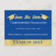 Stolta föräldrar kan meddela att det är dags att spara datumet för sin sons eller dotters examen. Klassisk och modern blå och vit komplett med falska guld examensmössor. Maila till din familj och vänner och låt dem veta att de ska spara datumet för en examen. Perfekt för studenter som ska ta studenten.