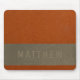 Falsk läderstruktur i bränd orange och varmt grått med ditt namn.
