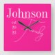 Modern Familj Namn Shock rosa Fyrkantig Klocka
