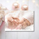 Modern och elegant julkort med ditt favoritfoto. Perfekt för baby i jul, familj porträtt eller ens ditt omhuldade husdjur. Kortet har ett glamoröst mjukt vitt filter runt kant, perfekt för att markera ansikte. Kortets baksida har mjuk rosa bakgrund med en vit snövit mönster. Du kan enkelt ändra färg och typsnitt i bakgrunden genom att klicka på Redigera design och sedan klicka på Redigera med verktyg. Ett annat unikt helgdag-kort som du har fått av Cherry Lane Designs.