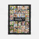 Modern Family 32 Photos Script Heart Anpassningsbar Fleece Blanket. Vänner dig i komfort och fotominnen med den här fotofilten som innehåller en lättladdad fotosamlingsmall med 32 kvadratbilder i titeln FAMILY i en modern skripttypografi som accentueras med en hjärtsvikt och personlig med en familj namn i ditt urval av text, grafik och färg (visas i vitt på svart). Mjuk och mysigt, den här filten ger en hjärtfull gåva eller ett meningsfullt tillägg till din egen hemmadekoration. Perfekt för att tjafsa på soffan, visa som keepé eller hedra minnet av en speciell händelse eller milstolpe. BLANKET-ALTERNATIV: Provet visas i filtret Small 30x40" Fleece - andra storlekar finns på beställningssidan eller överförs till en Sherpa-filtfil eller annan produkt. ASSISTANS: Om du vill ha hjälp med att ändra designen, ändra storlek på eller överföra designen kontaktar du designern INNAN ORE ORDERING via fliken Zazzle Chatta MEDDELANDE eller e-post makeitaboutyoustore@gmail.com.
