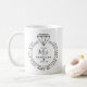 Modern "Får jag se förlovad ut i ring?" mugg. En söt gåva till de kommande brudarna. Texten "Framtida fru (lägg till namn) och datum för frieri eller planerad tidpunkt för bröllop, med illustration av en förlovning ring. Ett underbart fototillfälle att ta kontakt med mugg och tillkännage din förlovning på social-media!