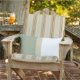 Trendigets moderna kudde har stora rektangulära färg-block i grönt och vitt, dividerat med ett smalare beige färg-block i mitten.